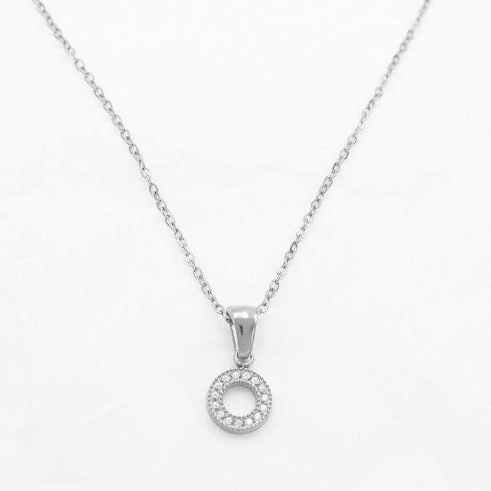 Ατσάλινο κολιέ Strassy Hoop, ασημί