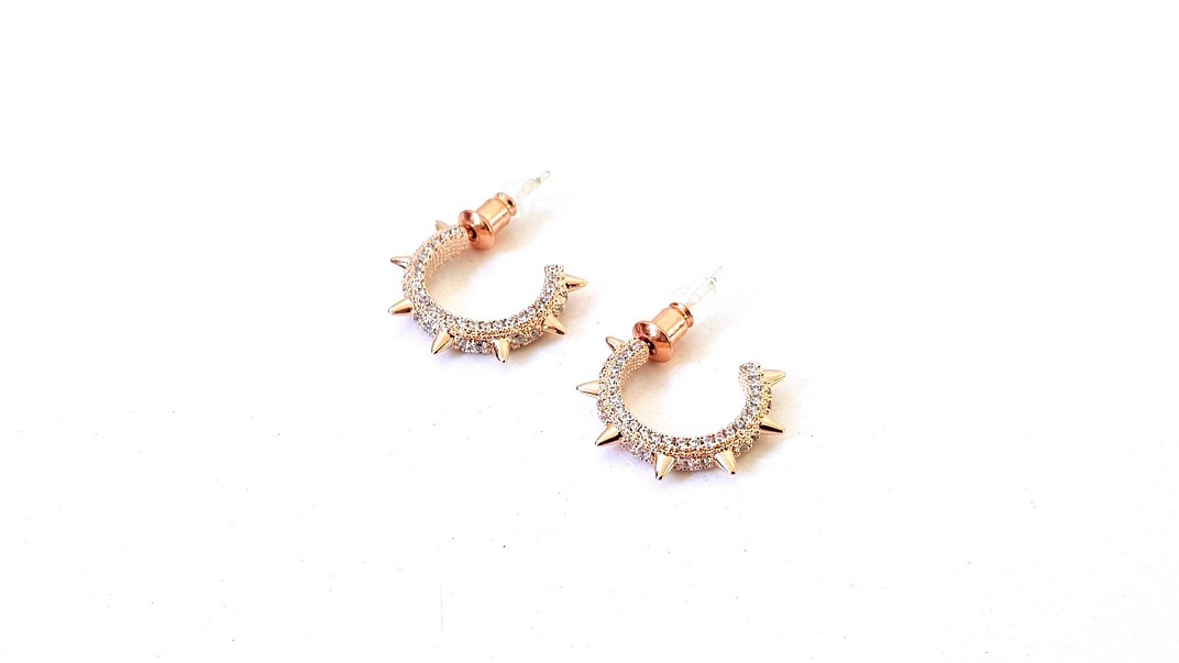 Μικροί κρίκοι, ανοιχτοί στο πίσω μέρος, με τρουκς και στρασάκια σε όλη την επιφάνεια, σε ροζ χρυσό χρώμα μεγάλης αντοχής (παρόμοια με αυτή των ατσάλινων). Διαθέτουν ασημένιο 925 καρφάκι.