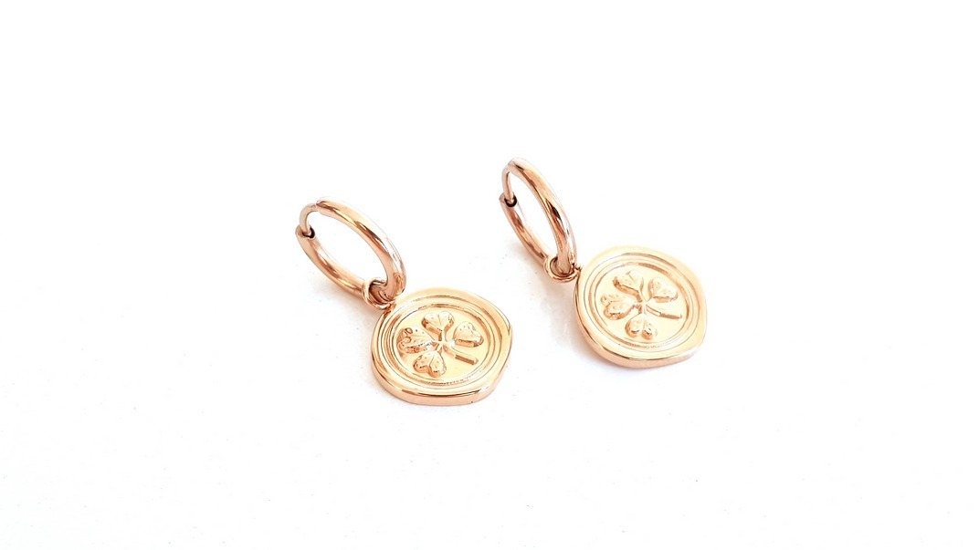 Μικροί ατσάλινοι κρίκοι, με κρεμαστά στοιχεία με ανάγλυφο σχέδιο τριφύλλι.