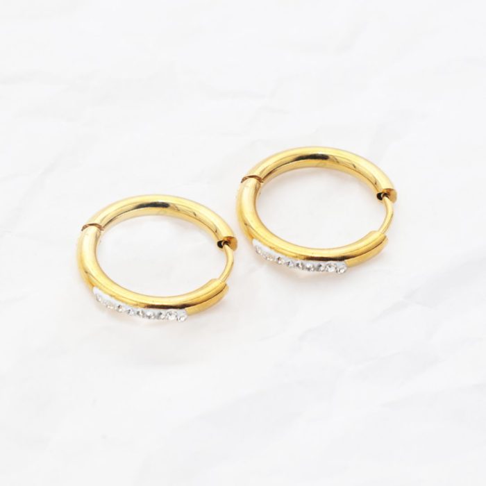 Ατσάλινα σκουλαρίκια κρίκοι Tiny, Strassy Medium, χρυσό