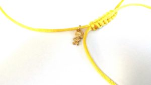 Κοντό, απλό κολιέ από σατέν κορδόνι “ποντικοουρά”, με επίχρυσα μεταλλικά τελειώματα και διακριτικό κρεμαστό charm. Το μήκος του αυξομειώνεται.
