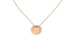 Κολιέ από ατσάλινη αλυσίδα και κρεμαστό μεταλλικό στοιχείο σε ροζ χρυσό χρώμα, με σκαλισμένο ζωδιακό σύμβολο.